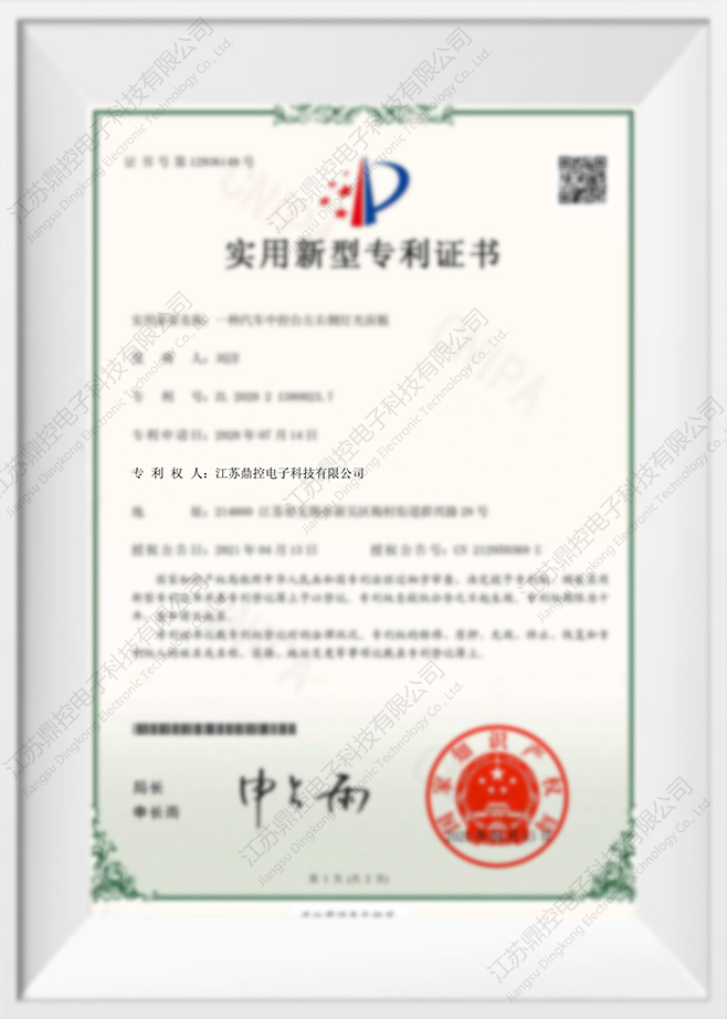 Bruksmodellpatentsertifikat for venstre og høyre sidelyspaneler på en bilsenterkonsoll