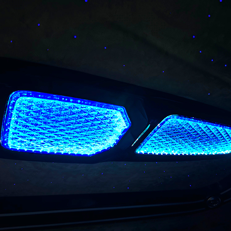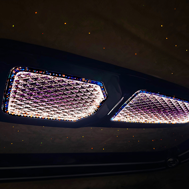 Taklampen integrerer europeiske optiske krystalllinser og et 3D dobbeltlags surroundlys og skyggesystem, presenterer en myk lyshalo-effekt gjennom 16 lag med diamantskjæringsteknologi, og støtter tre fargetemperaturer (3000K/4500K/6000K) og 16,8 millioner farger RGB-scenemoduser. Den øvre indirekte lyskilden skisserer takkonturen, den nedre lyslederen skaper en suspendert lyseffekt, og den stemmestyrte rytmen og stjernehimmelmodusen omdefinerer den mobile forretningsstuen, og gir den ultimate stilen til kontraktsforhandlinger og familiereiser.